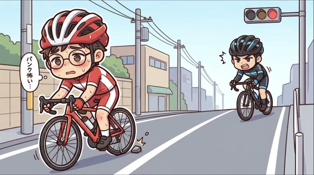 細いタイヤは段差や小石の影響を受けやすく、通勤途中でのパンクは本当に焦ります。「今日もパンクしませんように」と祈りながら走るのは、思った以上にストレスでした。