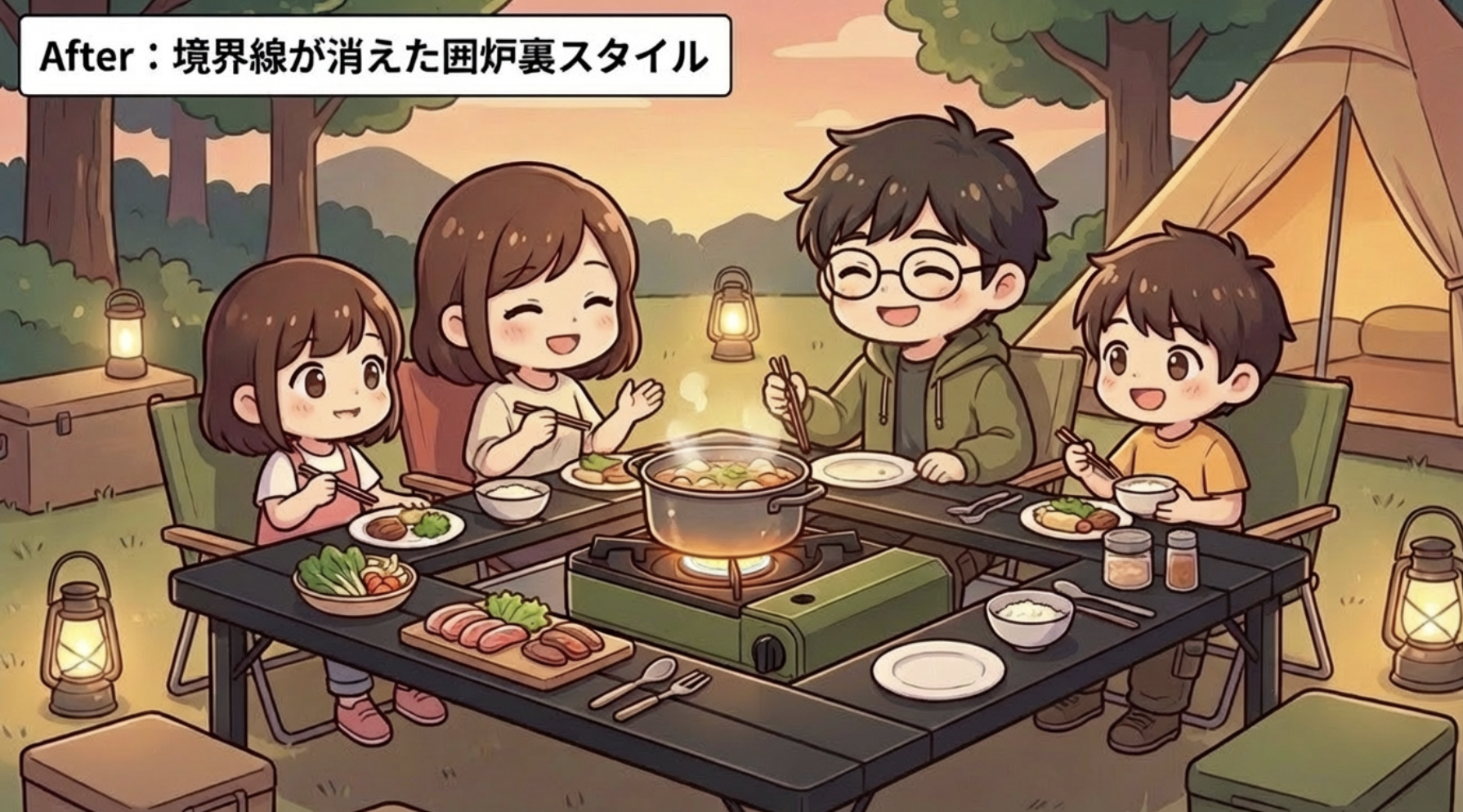 次のキャンプでは、誰も背中を向けることなく、みんなの笑顔を見ながら乾杯しませんか?
