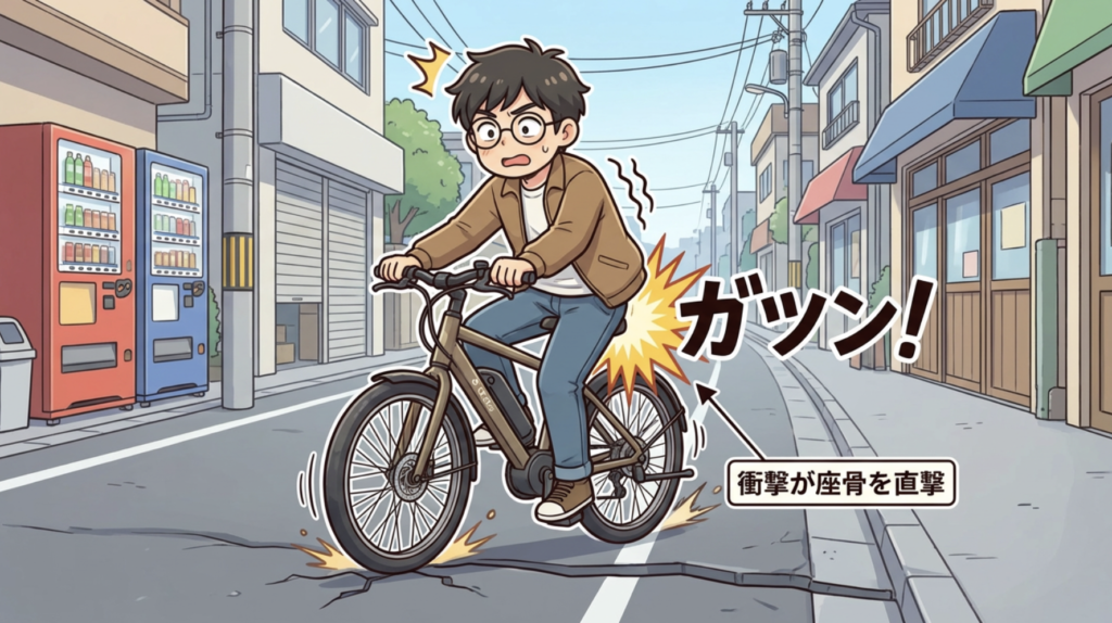 特に私の通勤ルートには、歩道の段差や舗装の継ぎ目が数多くあります。そのたびに「ガツン!」という衝撃が座骨を直撃し、それが積み重なって激痛になっていたのです。つまり、サドルをいくら柔らかくしても、衝撃そのものを吸収しなければ根本的な解決にはならないということです。