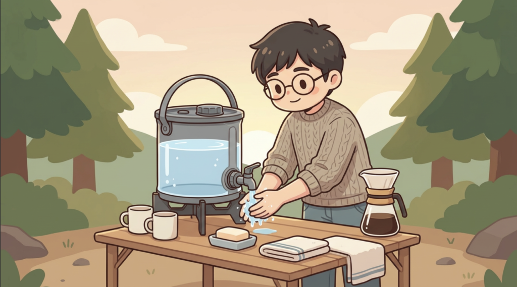 対策: 水場からサイトまでの距離が長い場合は、満タンにせず6L程度にしておくのがおすすめです。長期間使ってきて、「必ず満タンにする必要はない」と気づきました。必要な分だけ入れる柔軟な運用が、このジャグの良さを最大限に引き出します。