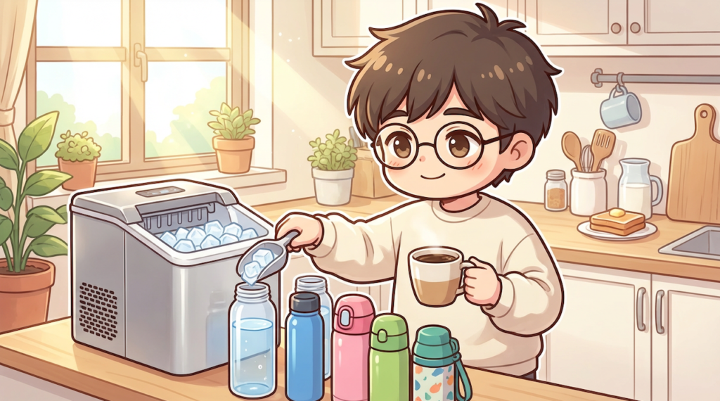 3人の子どもがいる我が家では、夏場の朝は戦場です。学校の水筒、部活のジャグ、私の仕事用水筒……。全員分の氷を用意しようとすると、冷蔵庫の製氷機能だけでは全く追いつきません。