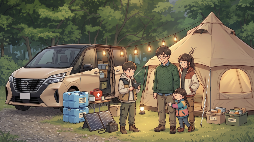 「うちのキャンプ道具と日常の足、これ全部組み合わせたら『完全自立型の避難所』になるんじゃないか…」